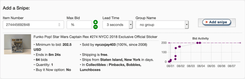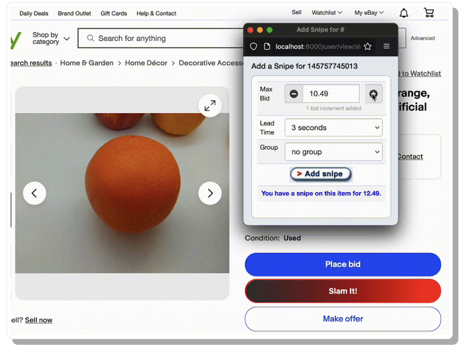 Add snipes directly from an eBay item page.
